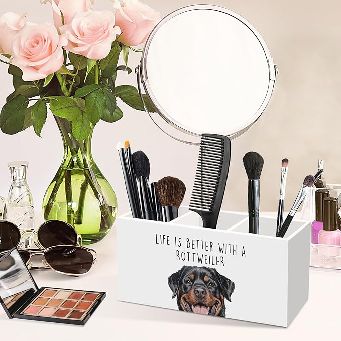 Rottweiler Dog Gifts Pen Pencil Holder for Desk, Funny Rottweilers Dog Lovers Gift Office Desk Accessories, Life Is Better with a Rottweiler Pen Holders Organizer for Women Bathroom Decor