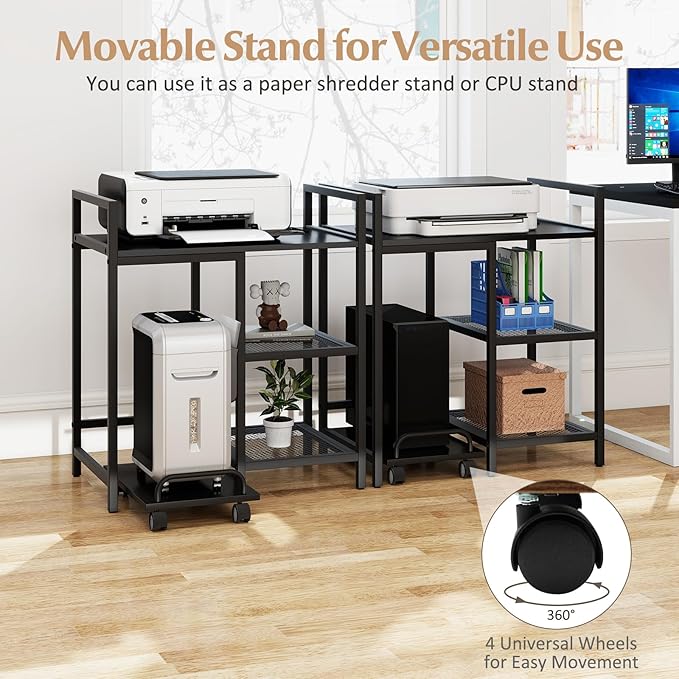 - [Movable Stand for Versatile Use]: This printer stand comes with 4 universal wheels and integrated handle for easy movement and quick access. Use it not only as a printer and shredder stand but also as a mobile CPU stand, enhancing workspace flexibility.