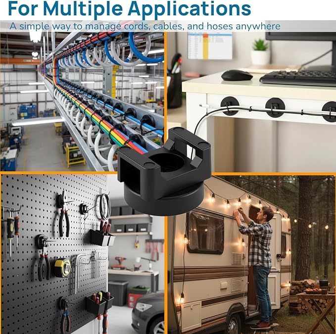 - 360° Adjustable & No-Drill Design: The magnetic zip tie mount rotates 360 degrees, allowing easy adjustment to any angle. No drilling or surface damage, the strong magnetic cable holder keeping your cables organized and stable even under vibration