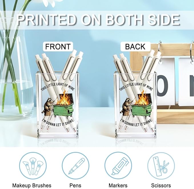 This Little Light Of Mine I'm Gonna Let It Shine Acrylic Cosmetic Pencil Holder Cup, Funny Raccoon Dumpster Fire Pen Holder Gifts For Women Men Friends HR Doctor, Office Gifts for Coworkers