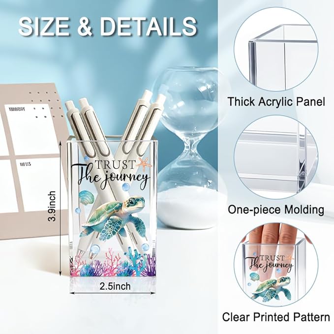 Trust The Journey Acrylic Pencil Holder Cup, Inspirational Gifts for Friends Coworker, Funny Sea Turtle Pen Holder for Women Girls Turtle Lover, Pencil Cup for Desk, Marker Makeup Organizer