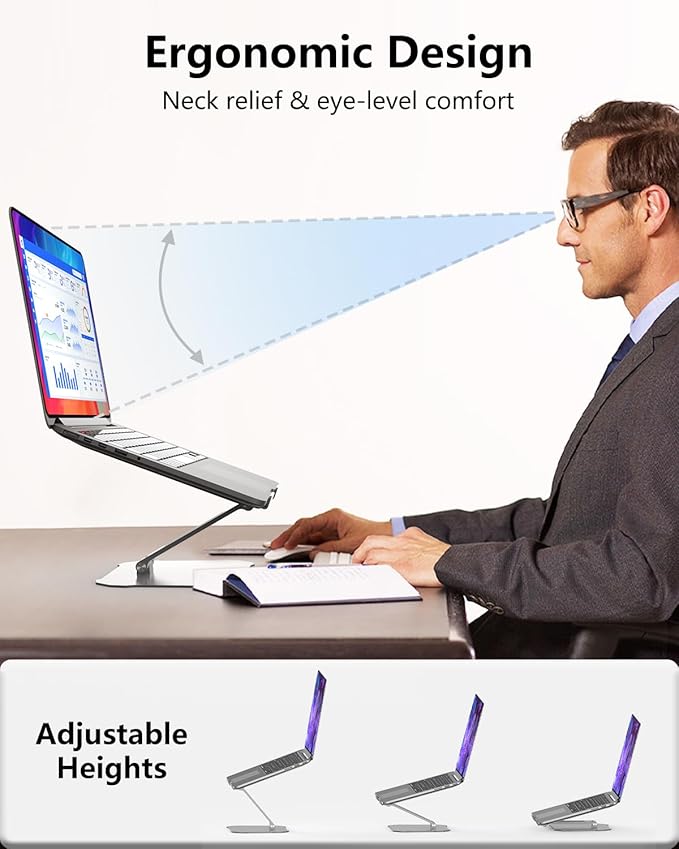 - [Ergonomic Comfort Adjustments] Easily raise or tilt your laptop to achieve the perfect viewing angle, promoting healthier posture and reducing neck, shoulder, and back strain. With a generous height range of 0.79–11.42 inches, this laptop riser adapts to different needs—whether for typing, video calls, or extended work sessions—providing true ergonomic comfort and flexibility throughout your day.