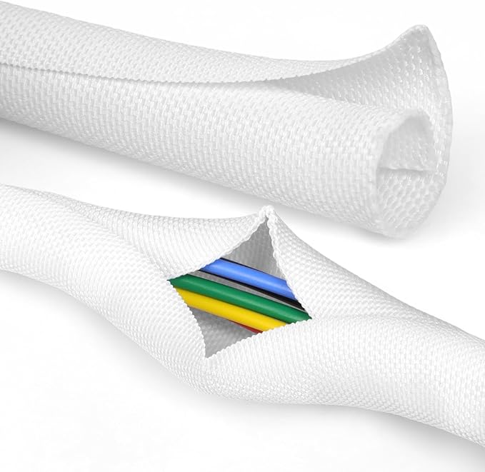 Split Braided Cable Sleeve,Flexible Wire Loom Tubing, Automotive Cord Protector Pet Proof, Cable Management for Computer TV Electric Wires Harness 16ft (White, 30mm(1-3/16")