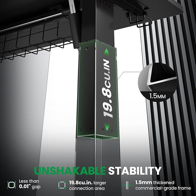 - Rock-solid Stability: Featured 19.8cu.in. larger connection area (at full height) with 1.5mm commercial-grade frame, SIAGO standing desk ensure stability and durability for long-lasting usage. Firm foundation for work at any height, eliminating any distractions from wobbling.